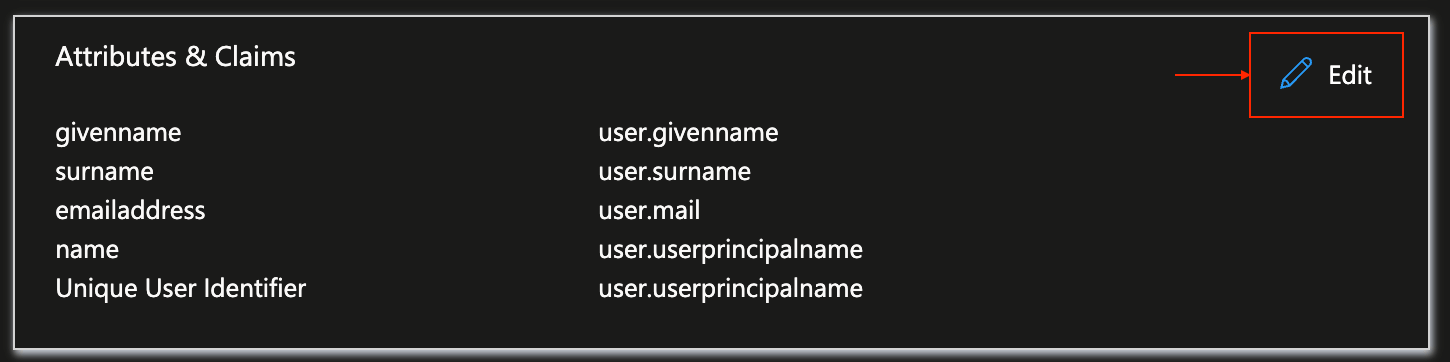 Next, click the pencil icon in the Attributes & Claims section.