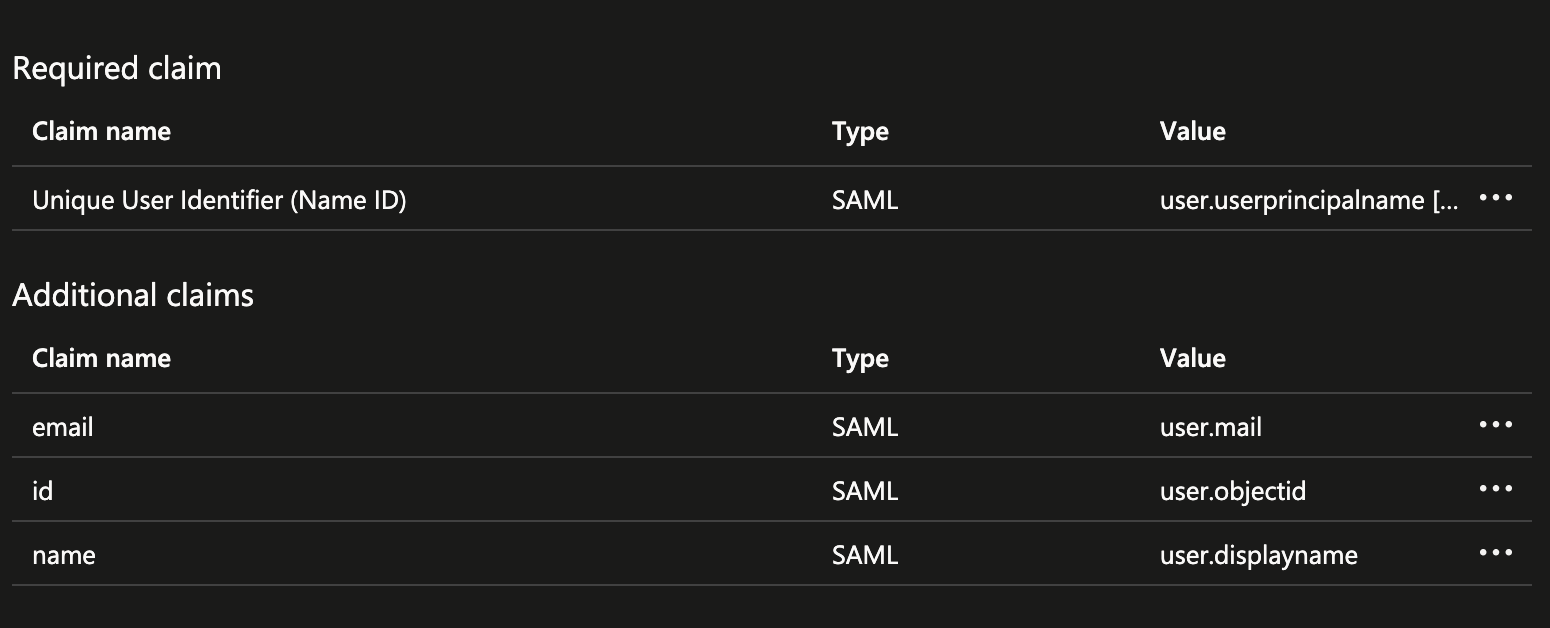 Now, fill the fields as shown in the picture below and close the Attributes & Claims pane. You can clear the Namespace field for the entries in Additional claims. It's not being used or required.