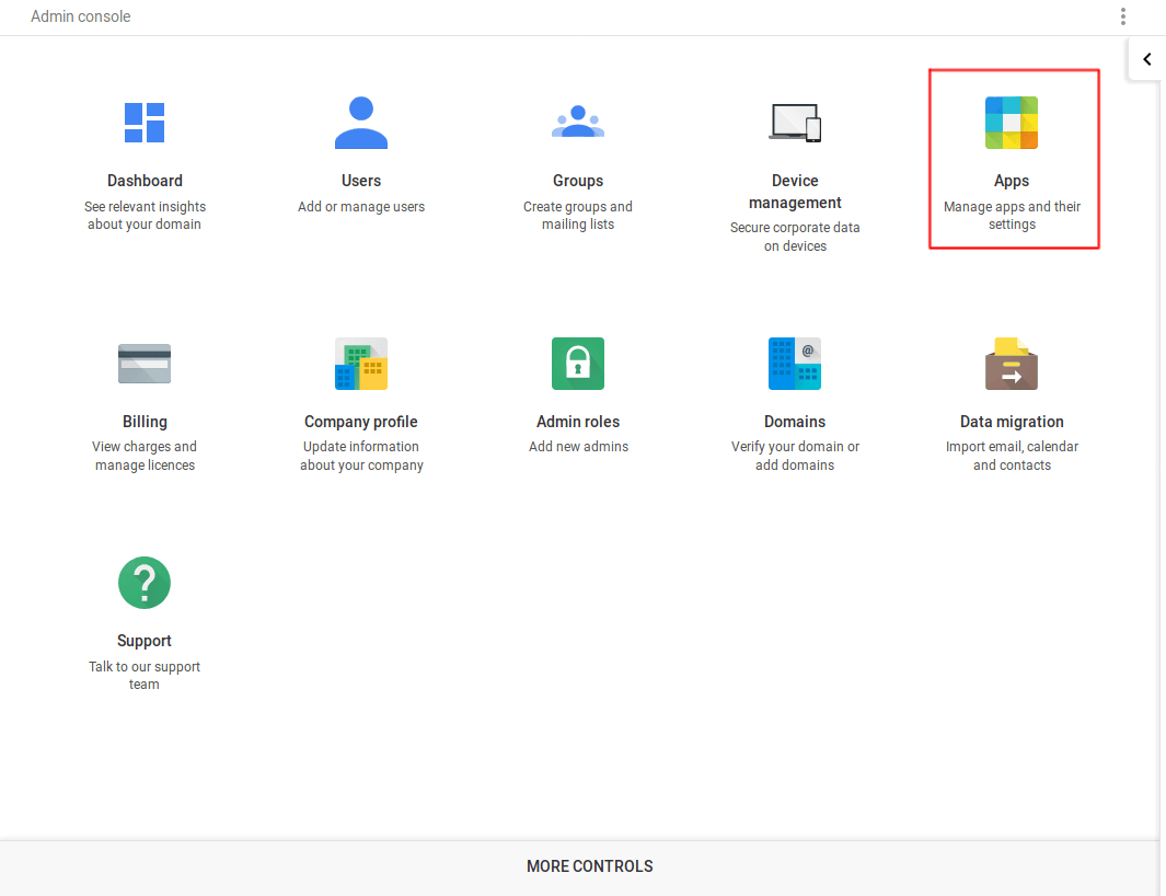 Go to your Google Workspace administration dashboard (Usually, it's https://admin.google.com) and there, open "Apps" settings.