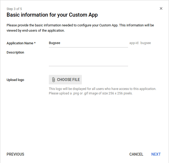 On the next step, fill the "Application name", "Description" and "Logo".